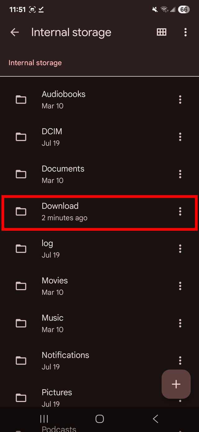 Se você não conseguir encontrar o local de armazenamento da pasta Downloads em seu aplicativo gerenciador de arquivos, navegue até o armazenamento interno do seu telefone.