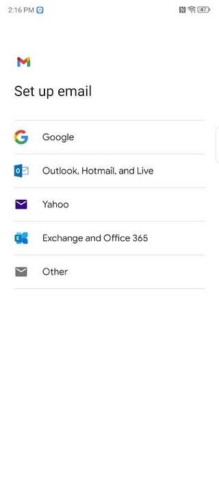 Quando o Configurar e-mail a tela for exibida, selecione Google.