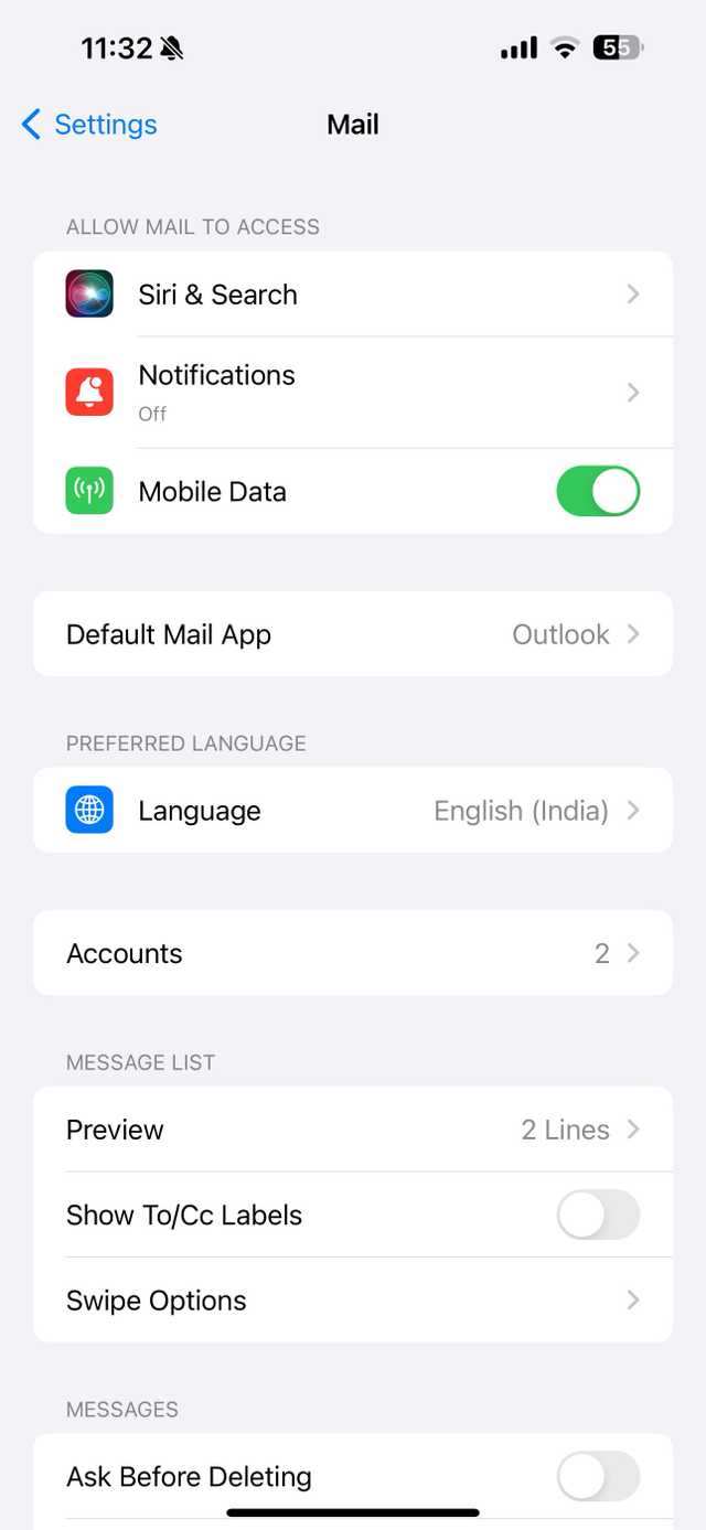 Se você planeja continuar usando o aplicativo Mail no iPhone e iPad, defina o Gmail como conta padrão.
