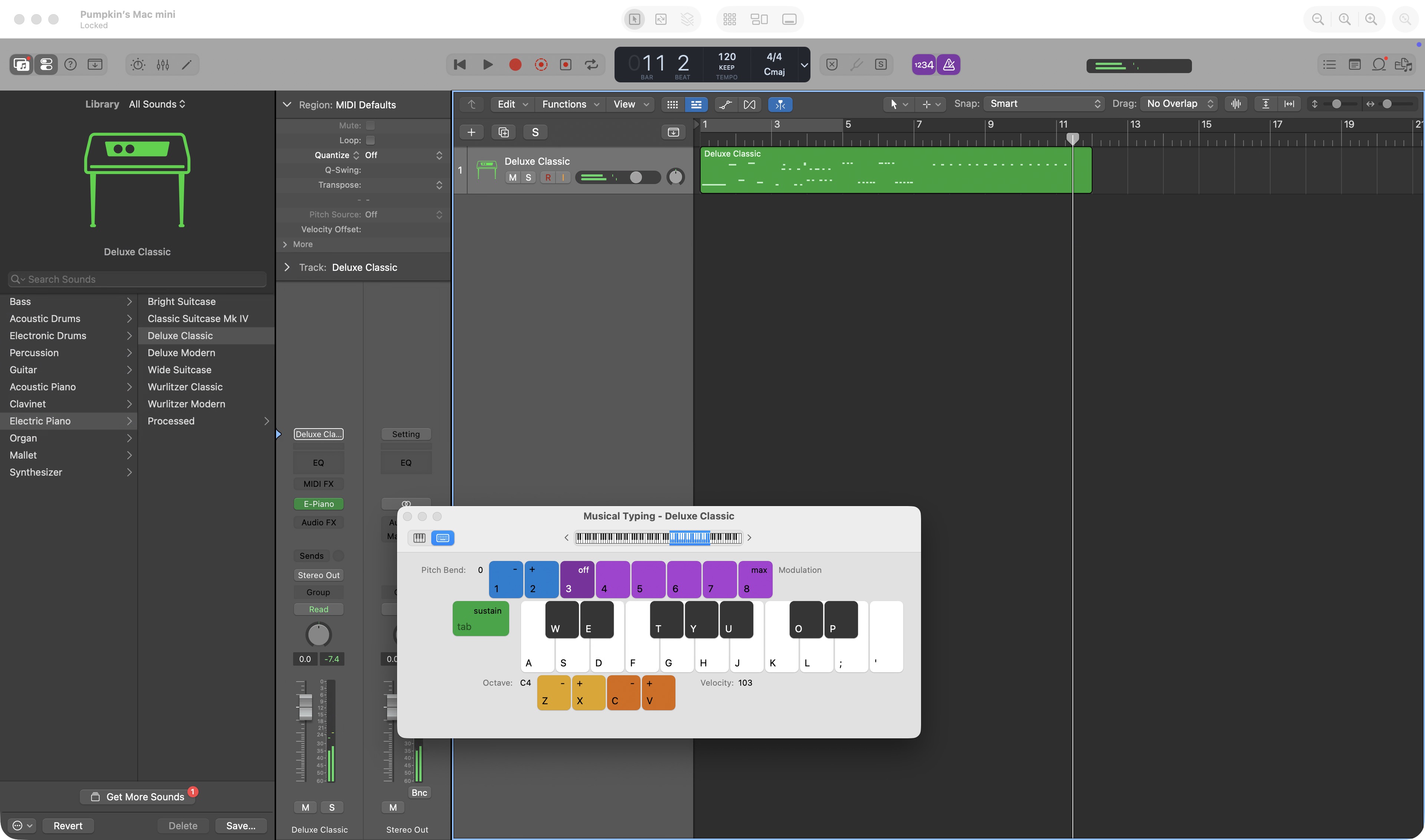 Usando o Logic Pro Musical Typing para controle MIDI remotamente praticamente sem latência