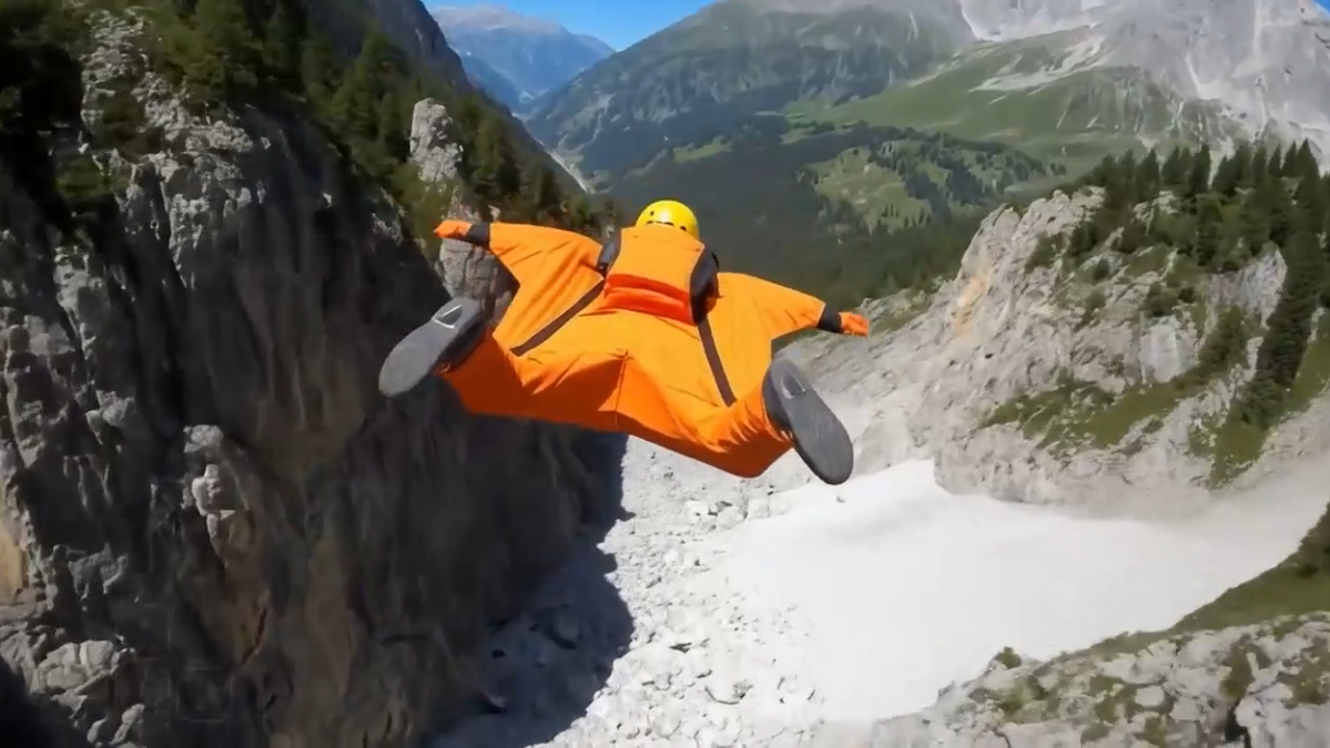 um alpinista em uma montanha em um mundo criado pelo projeto genie