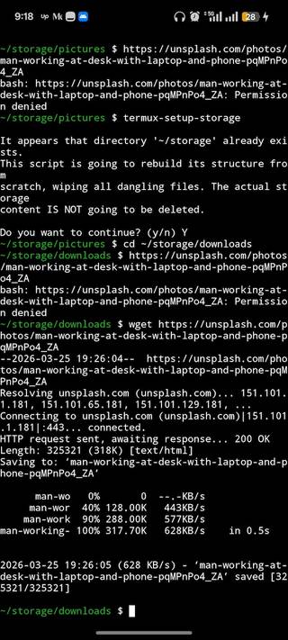 Para imagens, concedo ao Termux acesso a uma pasta. Então eu puxo o arquivo de destino usando o wget comando seguido pelo URL da imagem. Para vídeos, eu uso yt-dlp ou python -m yt_dlp e o link.