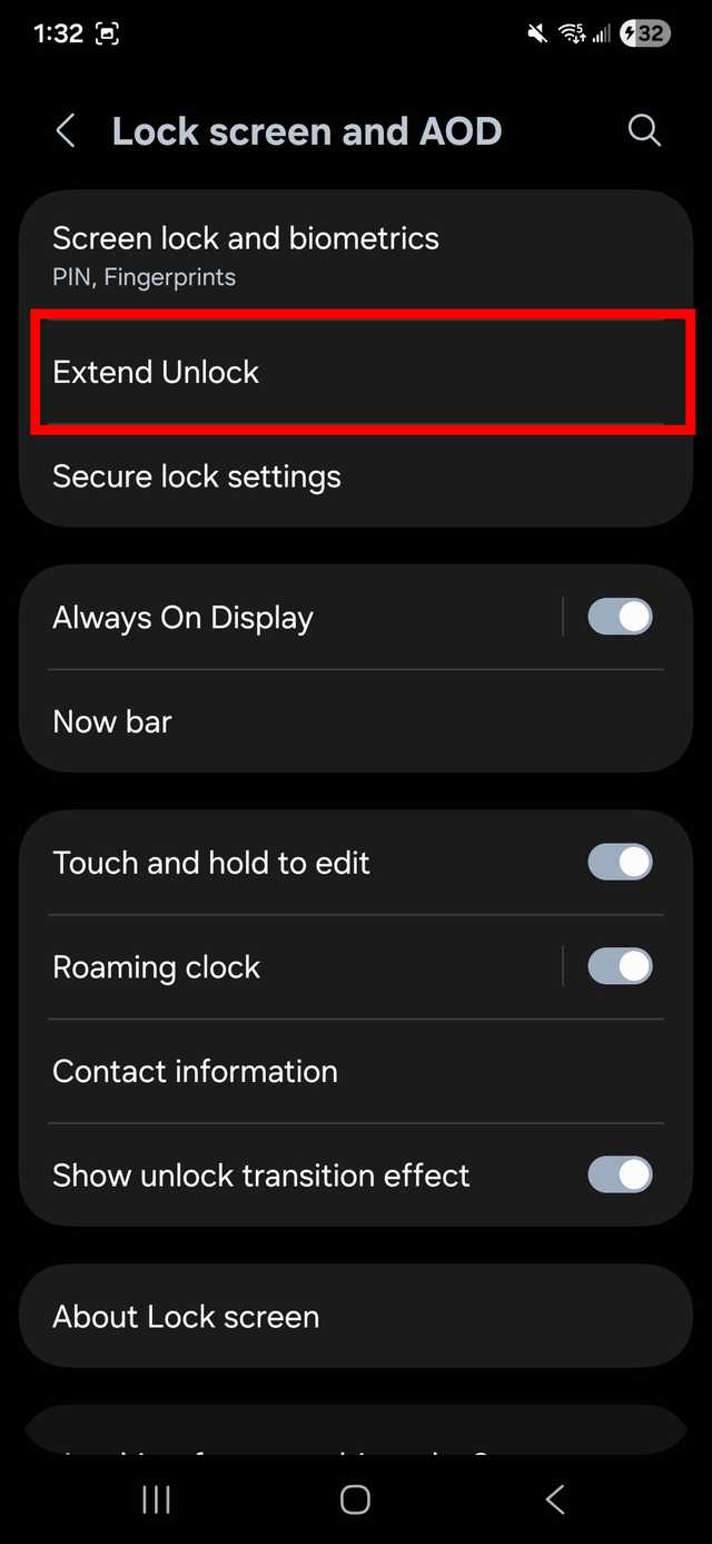 Então, para ficar tranquilo, desativei o Extend Unlock no meu telefone. Você pode fazer isso acessando as configurações do seu dispositivo Android.