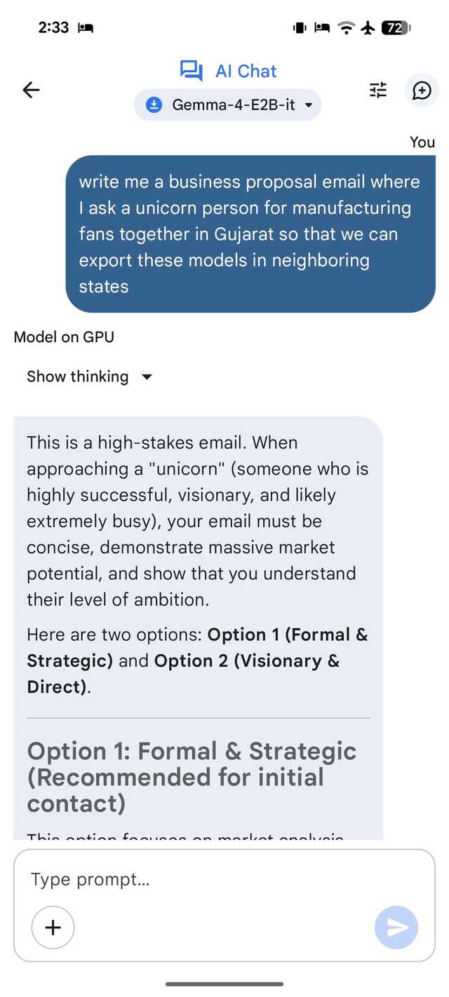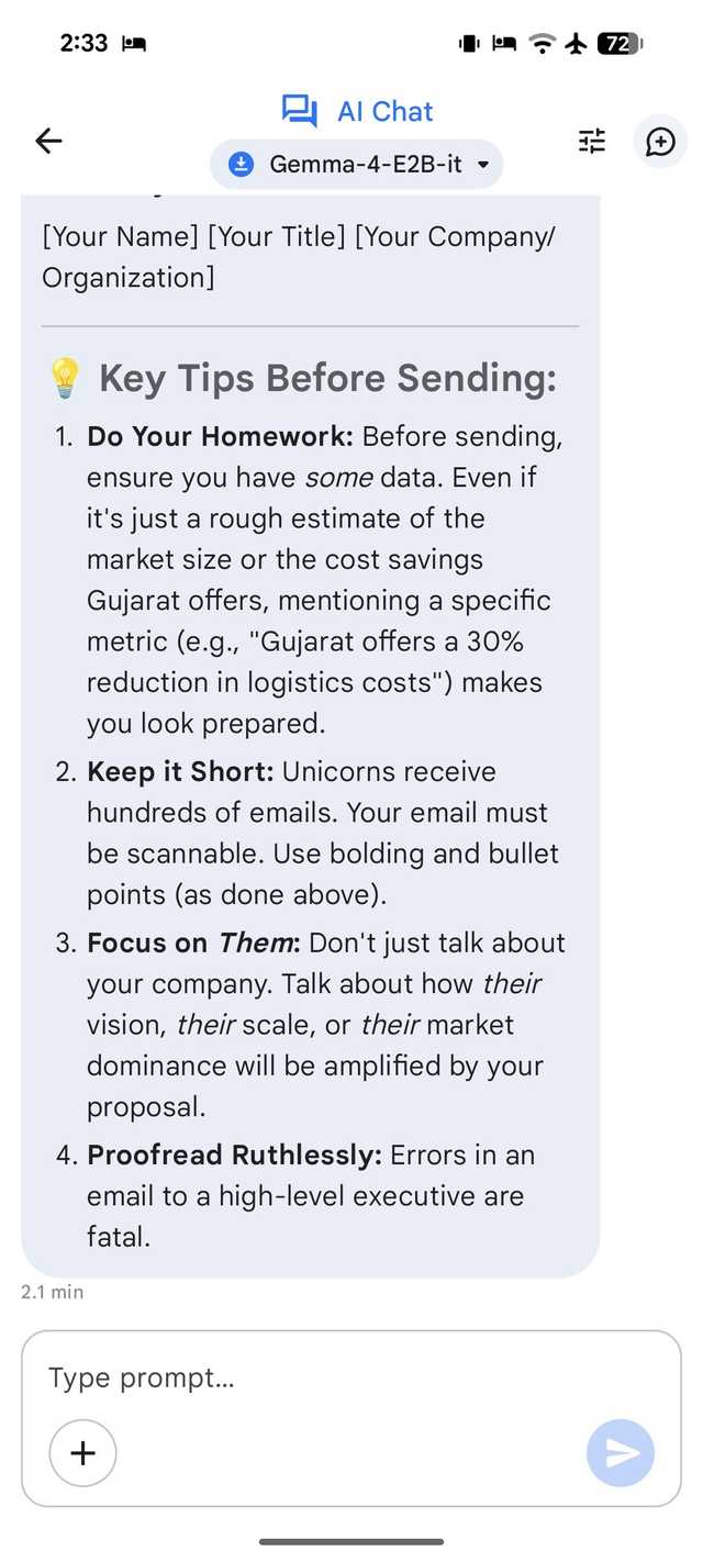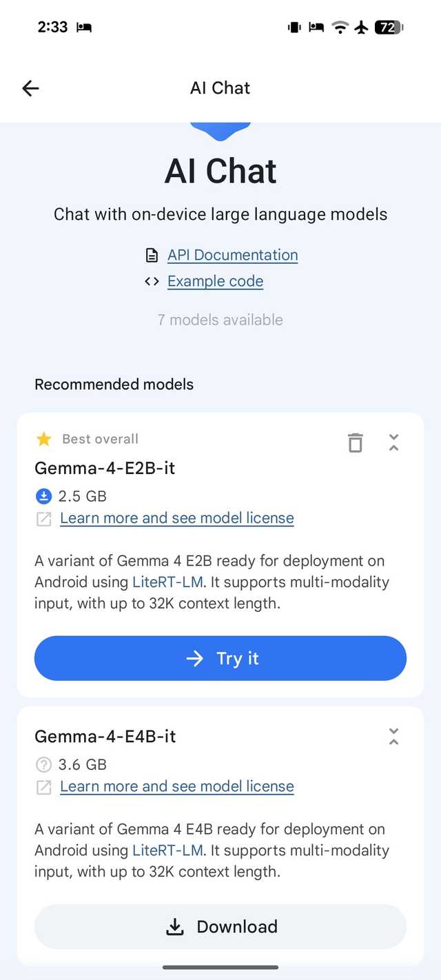 E2B é uma ferramenta pequena, mas eficaz, que estou usando no meu Pixel 8. No entanto, se você tiver um telefone Android com mais RAM, poderá experimentar o modelo E4B.