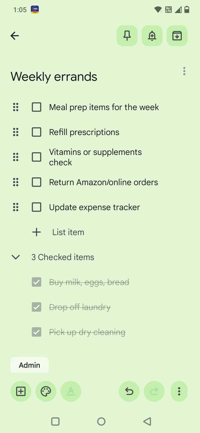 Uma das inovações mais significativas que tive com o Google Keep foi tratar algumas tarefas como comportamentos recorrentes, em vez de lembretes únicos.
