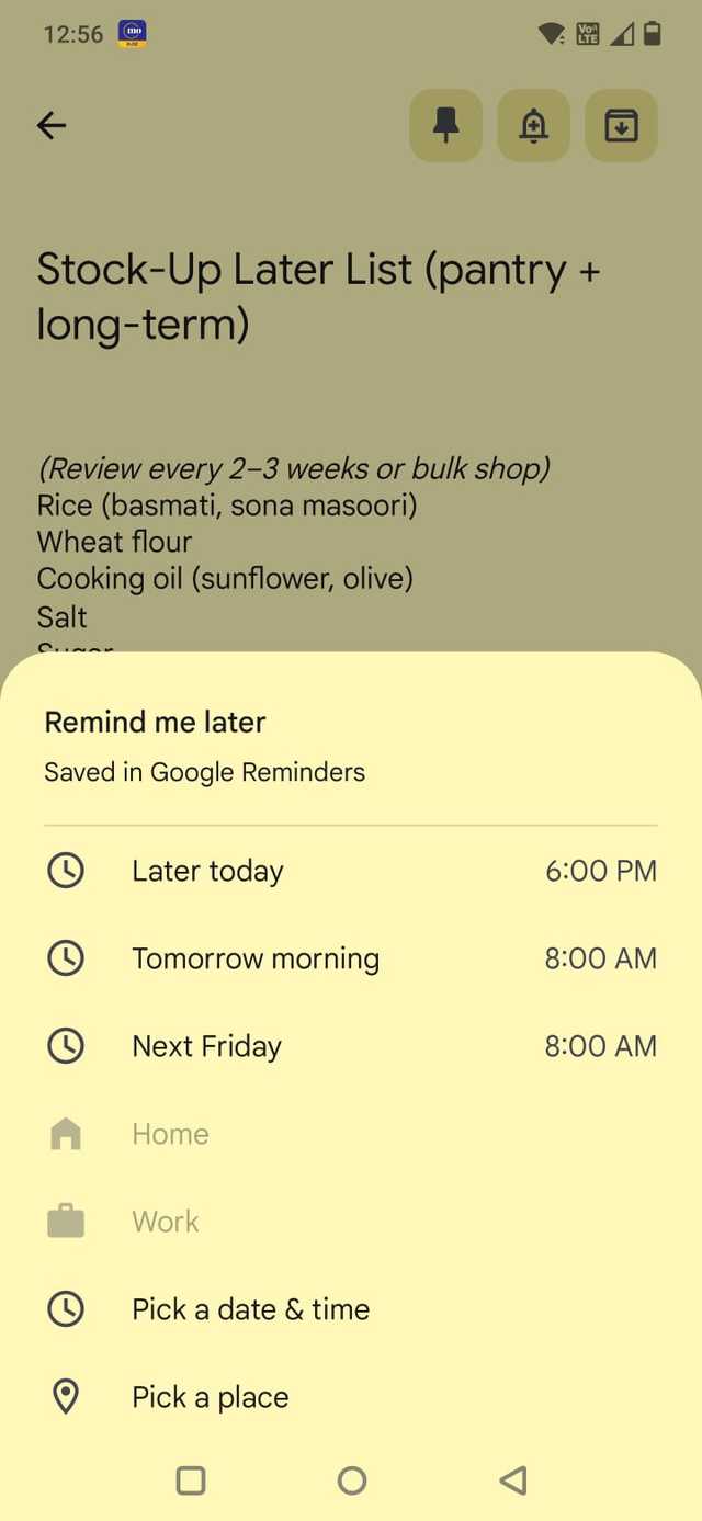 Use os lembretes do Keep para lembrar tarefas