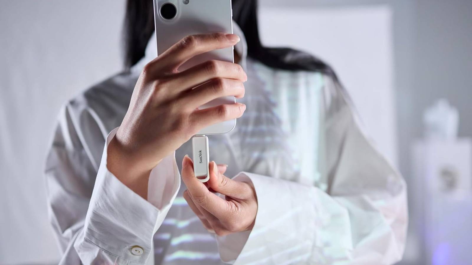Pessoa usando SanDisk Phone Drive de 1 TB