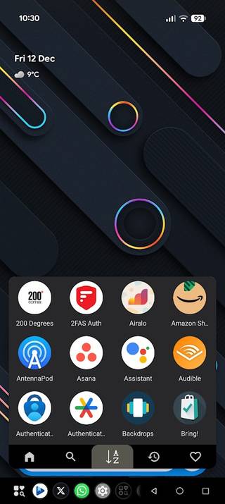 O mini iniciador de aplicativos abre uma versão reduzida da gaveta de aplicativos. Você pode adicionar aplicativos favoritos, classificar em ordem alfabética ou usada recentemente e pesquisar aplicativos.