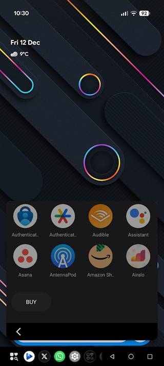 As opções de personalização do aplicativo devem permitir que você alterne os três elementos da barra de tarefas (iniciador de aplicativos, aplicativos ativos e botões de navegação) de acordo com suas preferências, especialmente se você usar a versão gratuita do aplicativo.