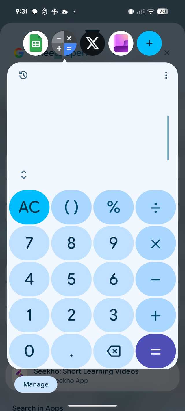 Posso ter meu aplicativo bancário, o Planilhas Google e a Calculadora como uma bolha flutuante. Isso transforma meu telefone de um dispositivo que executa aplicativos em um dispositivo que executa tarefas.