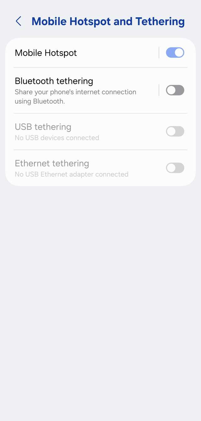 Cansei de verificar constantemente minhas configurações para ver se estava chegando ao limite. Por isso fui direto para o Configurações > Conexões > Menu Hotspot móvel e tethering e abriu o Mobile Hotspot.