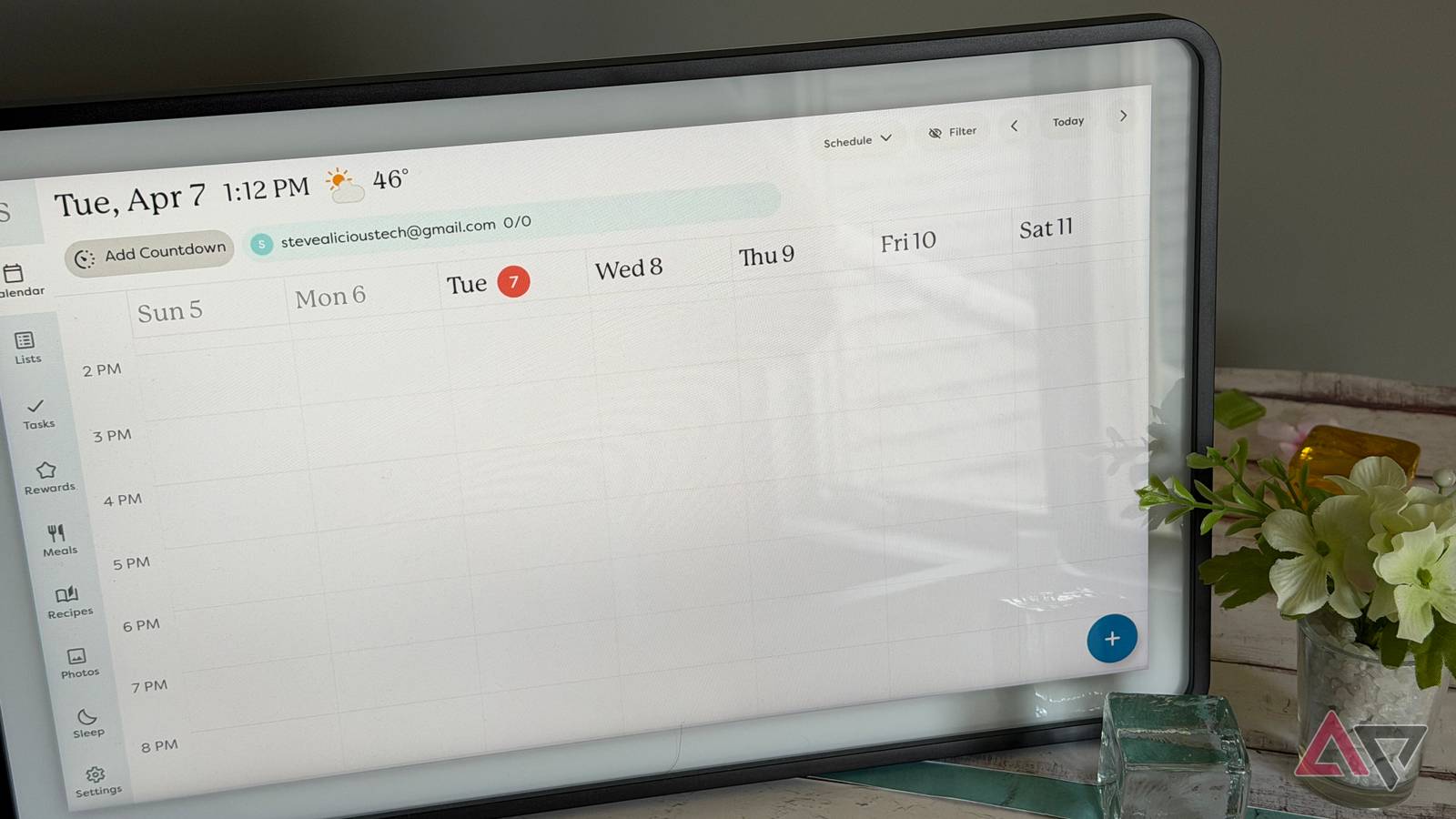 Gosto da visualização do calendário, que me permite ver minha semana ou mês dividido por compromissos e reuniões. Os eventos da agenda podem ser sincronizados diretamente do Gmail ou posso adicioná-los manualmente no aplicativo Skylight.