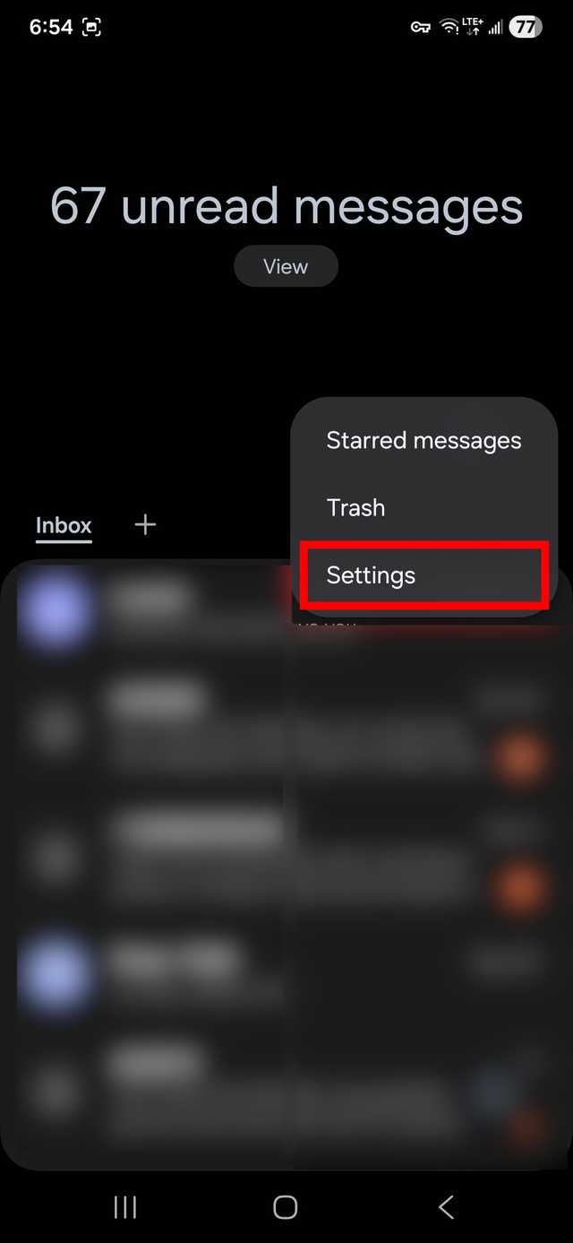 - . Selecione Configurações de mensagem (ou Configurações para variações mais antigas).