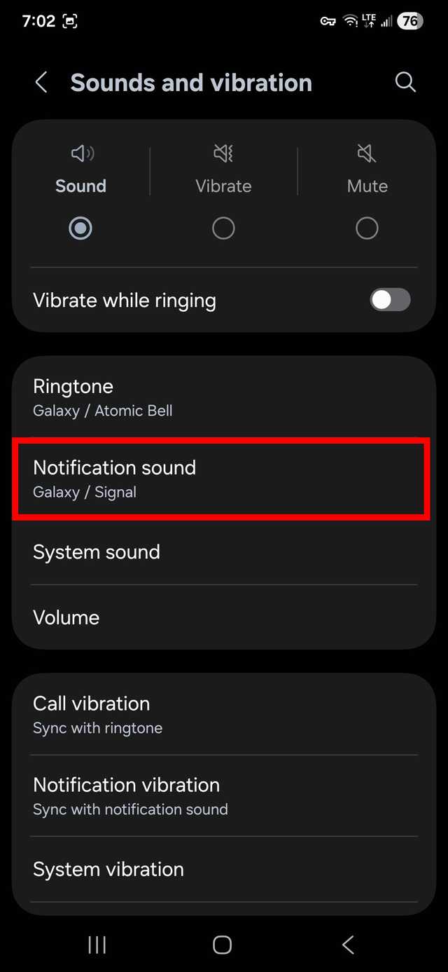 - . Toque em um nome de áudio para Selecione um som de aviso. Para alguns dispositivos Samsung, você pode personalizar o volume do áudio da nota tocando no controle deslizante de volume.