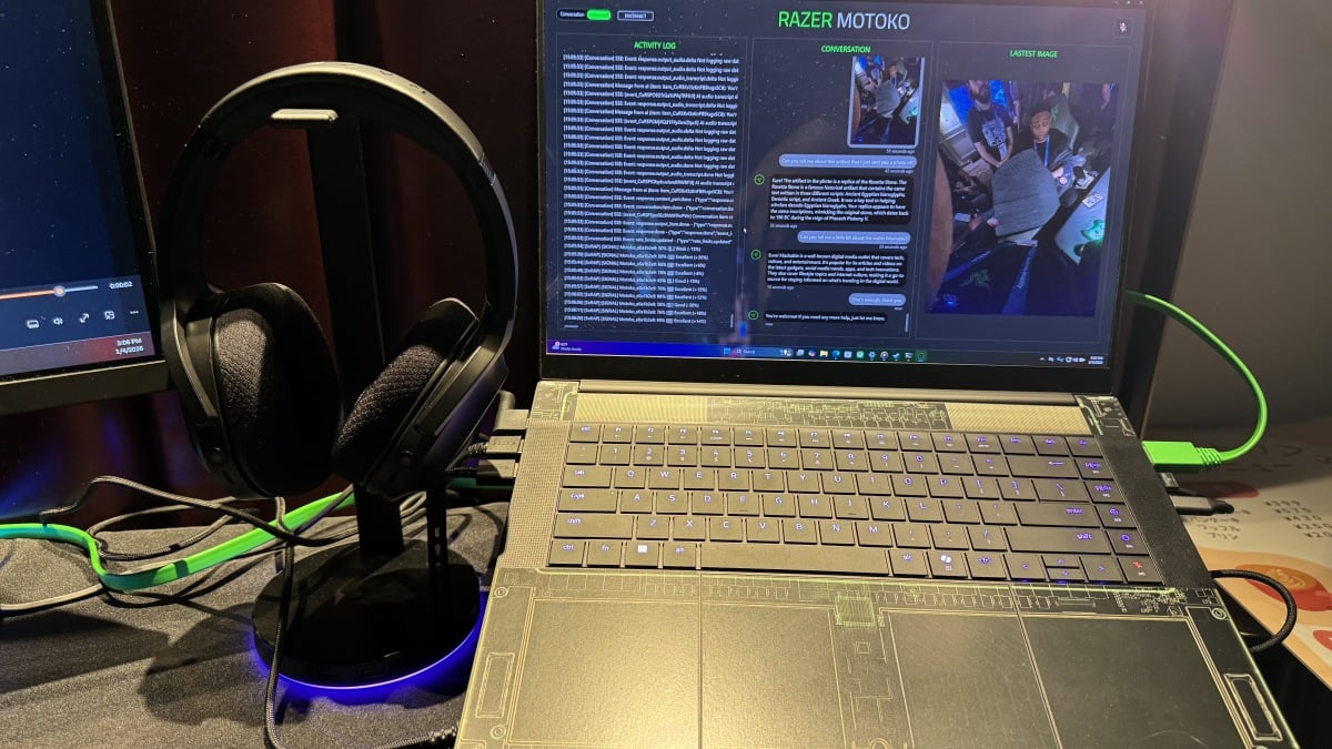 A Razer acredita que há vários bônus em ter um assistente de IA em seus fones de ouvido, em vez de em seus óculos inteligentes. A demonstração mostrou outro: o assistente de IA está conversando com o usuário no fone de ouvido. Com óculos inteligentes, é muito mais fácil para as pessoas escutarem o que seu assistente de IA está lhe dizendo.