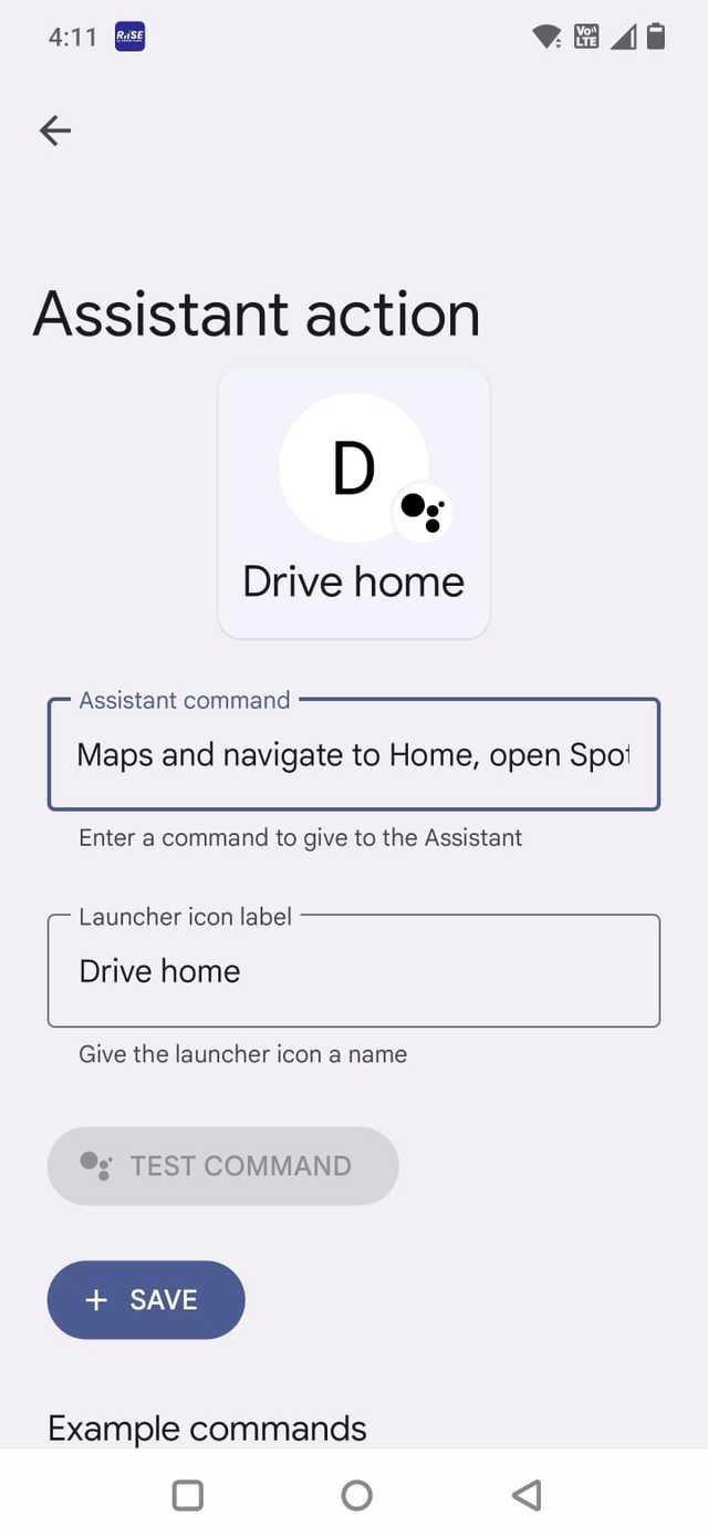 Ao escolher Ação do assistentevocê pode criar um comando personalizado e adicionar um rótulo que aparece como um ícone na tela do seu carro.