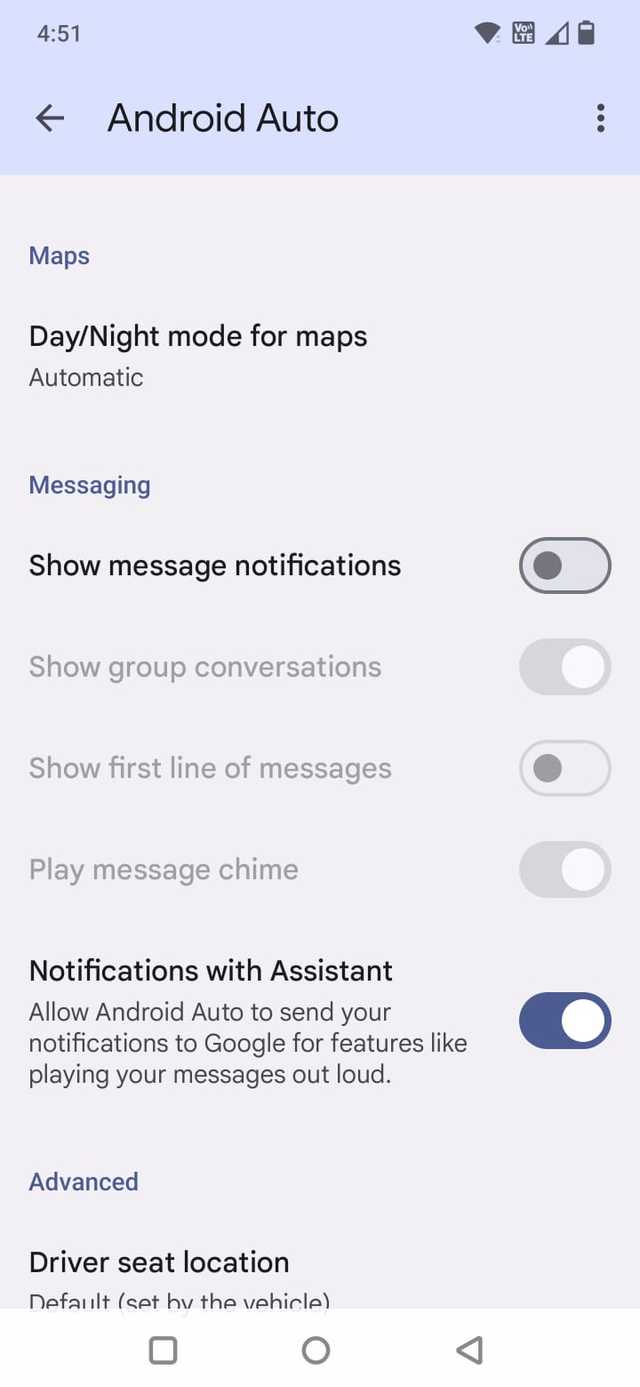Você também pode desligar Notificações com Assistente para evitar interrupções de voz durante a condução.