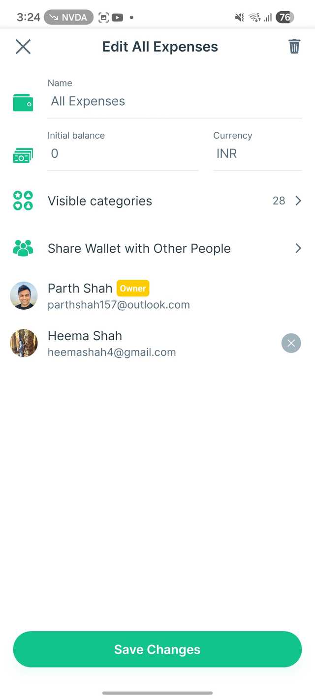 Para finanças compartilhadas, o recurso Carteira Compartilhada é outra grande economia de tempo. Meu parceiro e eu podemos contribuir e visualizar uma carteira única dedicada às despesas domésticas.
