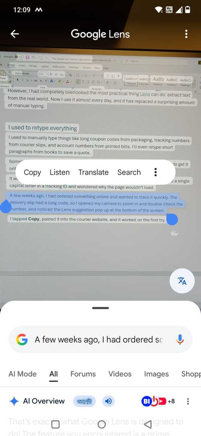 No entanto, esqueci completamente a coisa mais prática que o Lens pode fazer: extrair texto do mundo real.