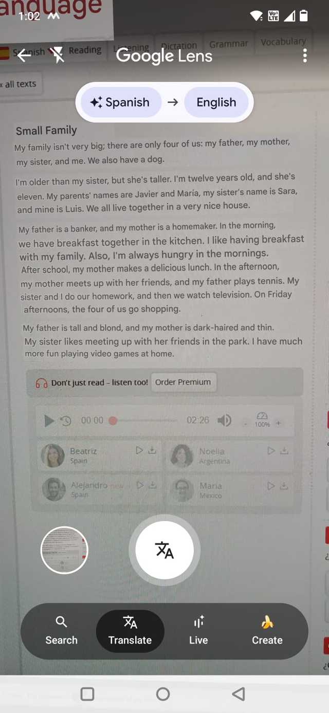 É especialmente útil para menus, embalagens ou instruções impressas. Se a sobreposição ao vivo parecer desordenada, você pode tirar uma foto e deixar o Lens traduzi-la de maneira mais clara depois.