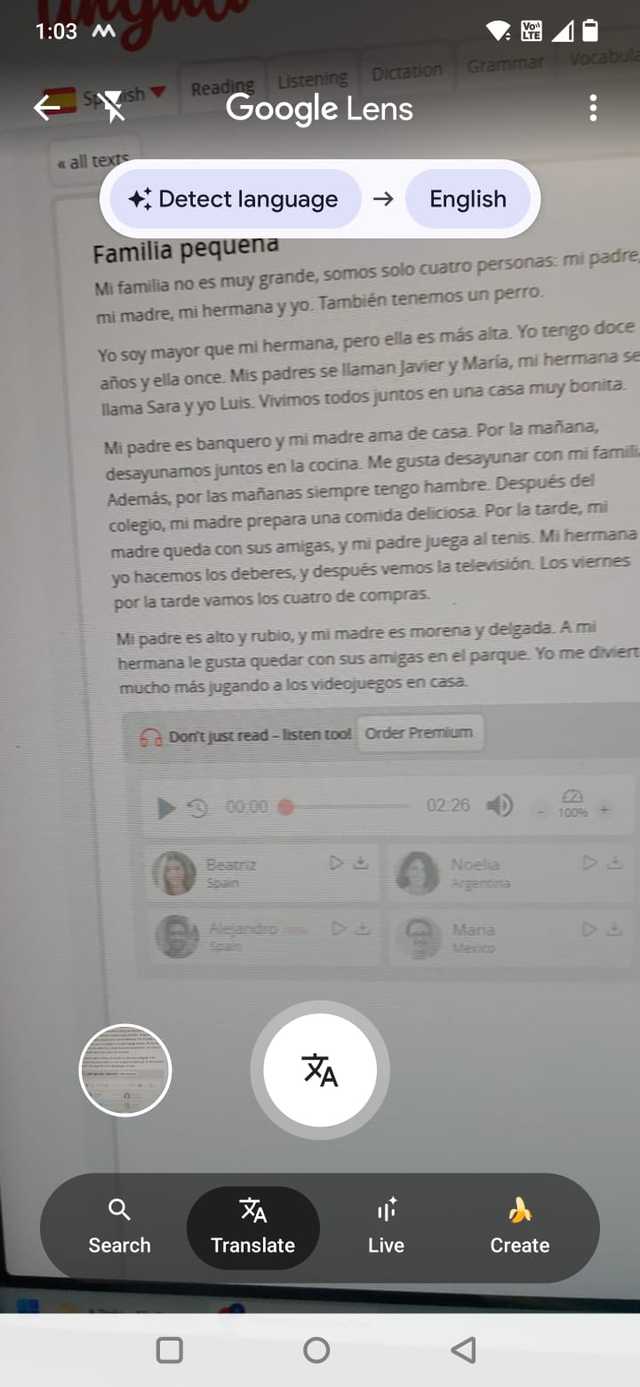 A extração de texto não é o único truque aqui. O Google Lens também pode traduzir o que você está vendo em tempo real.