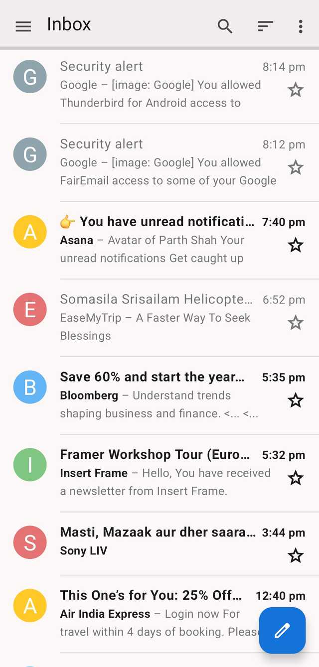 Finalmente cheguei ao meu limite este mês e decidi migrar meu fluxo de trabalho móvel para o Thunderbird no Android.