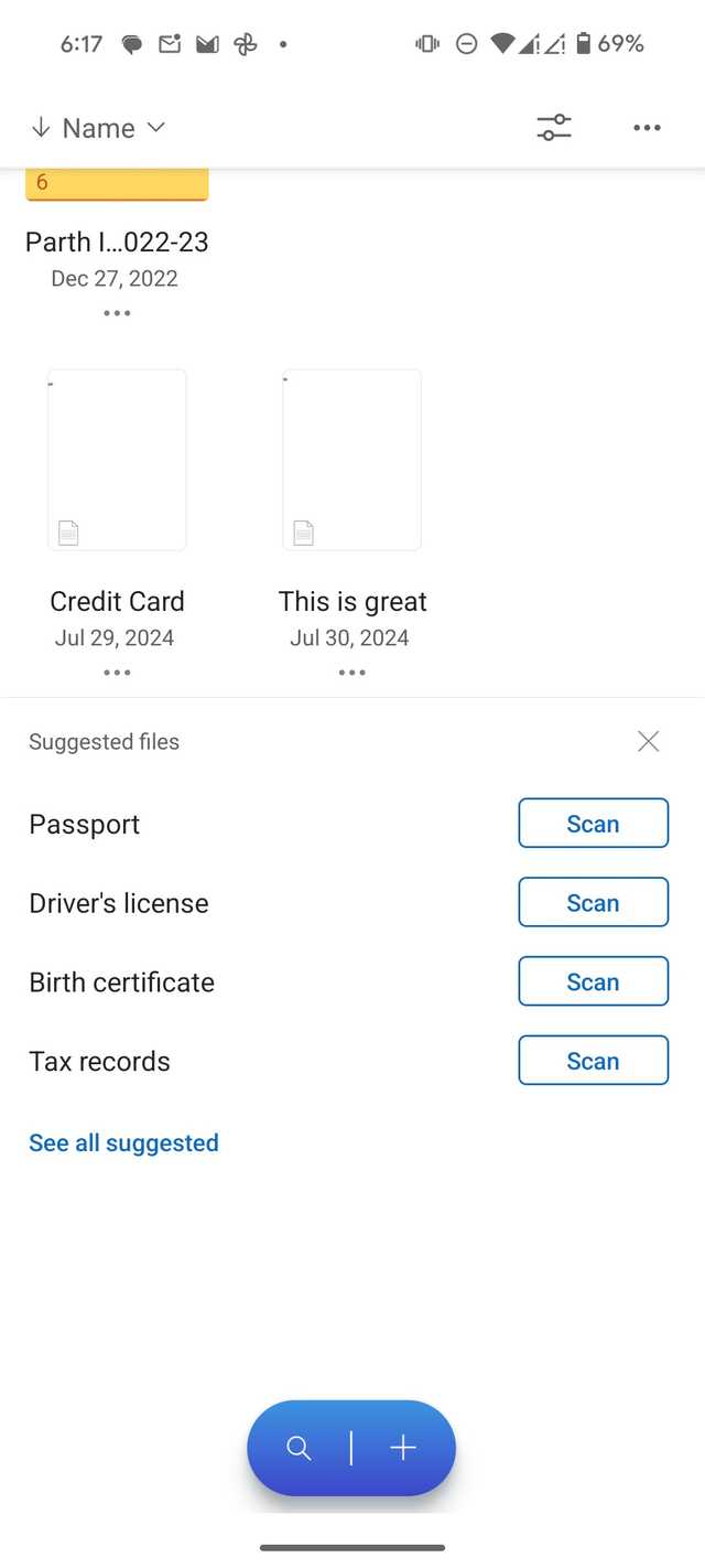 Um telefone mostrando uma lista de arquivos no Google Drive