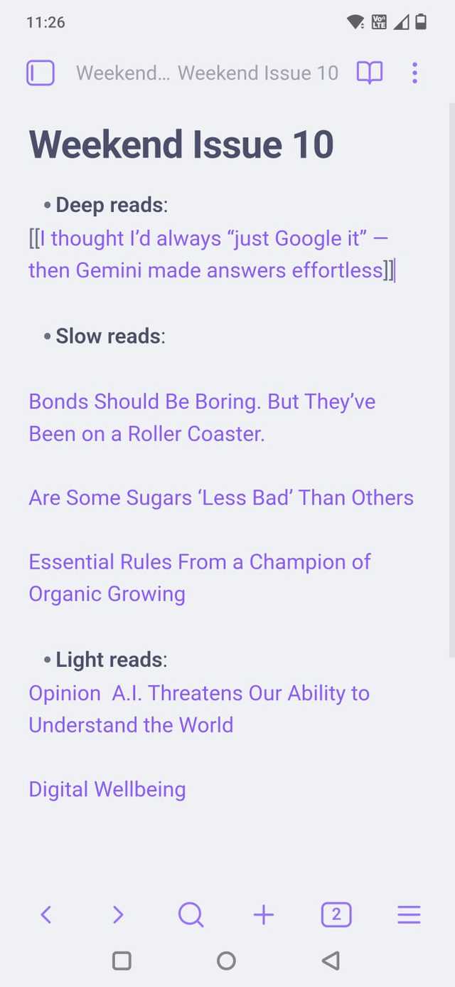 Transformar meu telefone em uma revista de fim de semana acabou mudando completamente a forma como penso sobre a leitura no meu telefone. Em vez de guias intermináveis ou feeds algorítmicos, agora abro meu telefone para algo que selecionei.