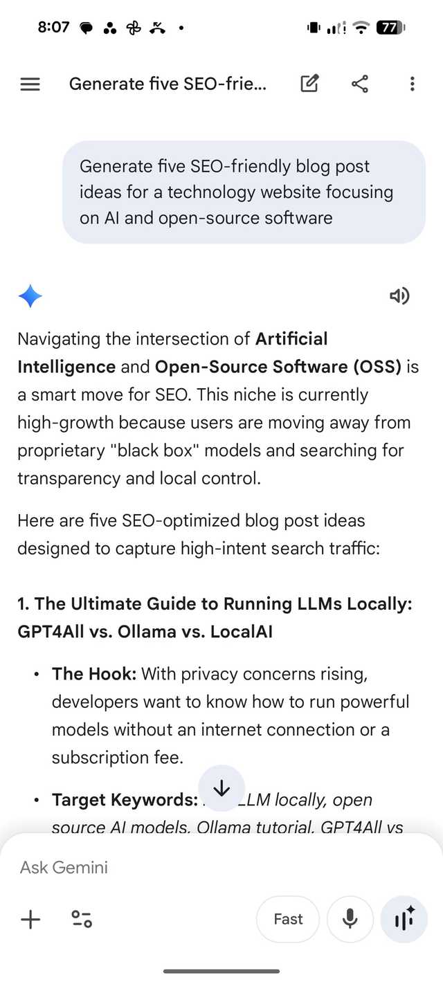 Gere cinco ideias de postagens de blog amigáveis ​​​​ao SEO para um site de tecnologia com foco em IA e software de código aberto.