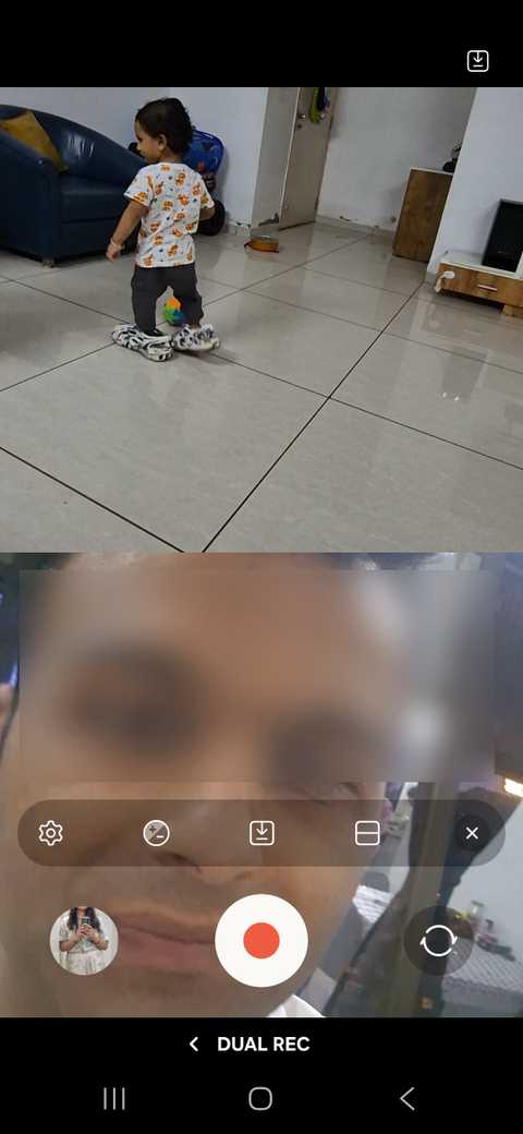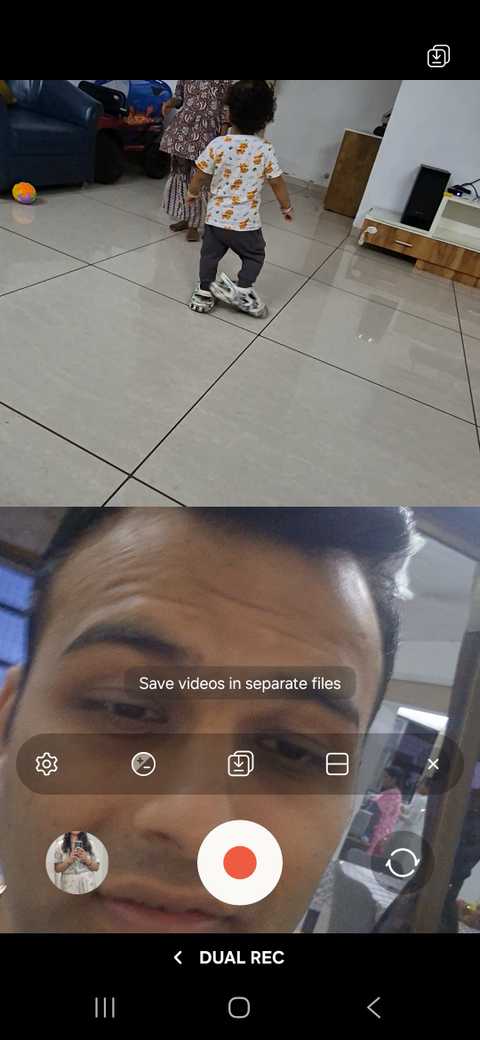 Para mim, a verdadeira magia da função Double Rec no meu telefone Galaxy é que ela resolve um problema em que todos os pais são confrontados: como gravar um momento único sem perder sua própria reação sincera.