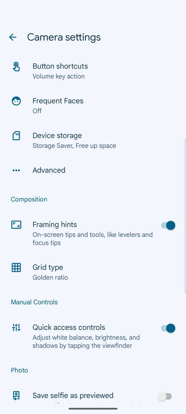 Isso me deixa louco atualmente, porque a solução é básica e foi incorporada diretamente nas configurações da câmera Pixel Video. Você pode abrir o Aplicativo de câmeraabrir Configuraçõesdescobrir composiçãoe permitir que Menu de dicas de enquadramento.
