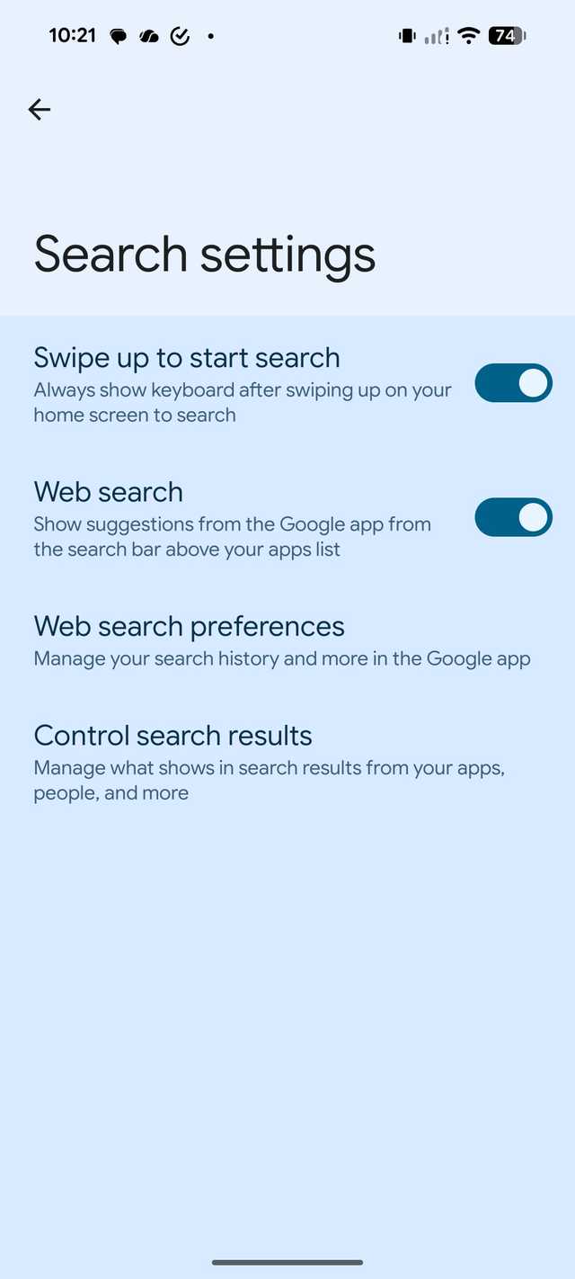 Parece pouco, mas quando você faz isso várias vezes ao dia, esses toques extras resultam em muito movimento desperdiçado. É por isso que Deslize para cima para iniciar a pesquisa alternar foi uma virada de jogo para mim.