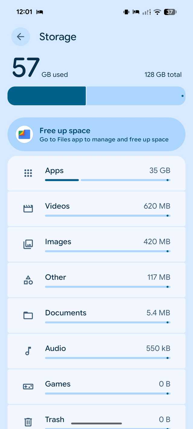 Finalmente comecei a usar a opção ‘Liberar espaço’ no menu Armazenamento. A opção me leva diretamente ao aplicativo Arquivos. Posso dar uma olhada em todas as sugestões do aplicativo e tomar as medidas necessárias para liberar espaço rapidamente.