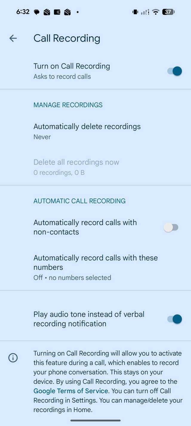 Você pode abrir o Aplicativo de telefoneVá para Configurações > Gravação de chamadase ative o Grave chamadas automaticamente com pessoas que não são contatos alternar.
