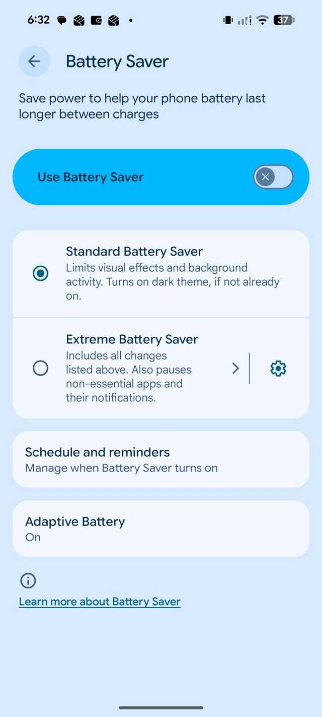 Depender do modo de economia de bateria padrão não foi suficiente para mim, especialmente porque prefiro economizar energia muito antes de o telefone atingir a zona de emergência de 5% a 10%.