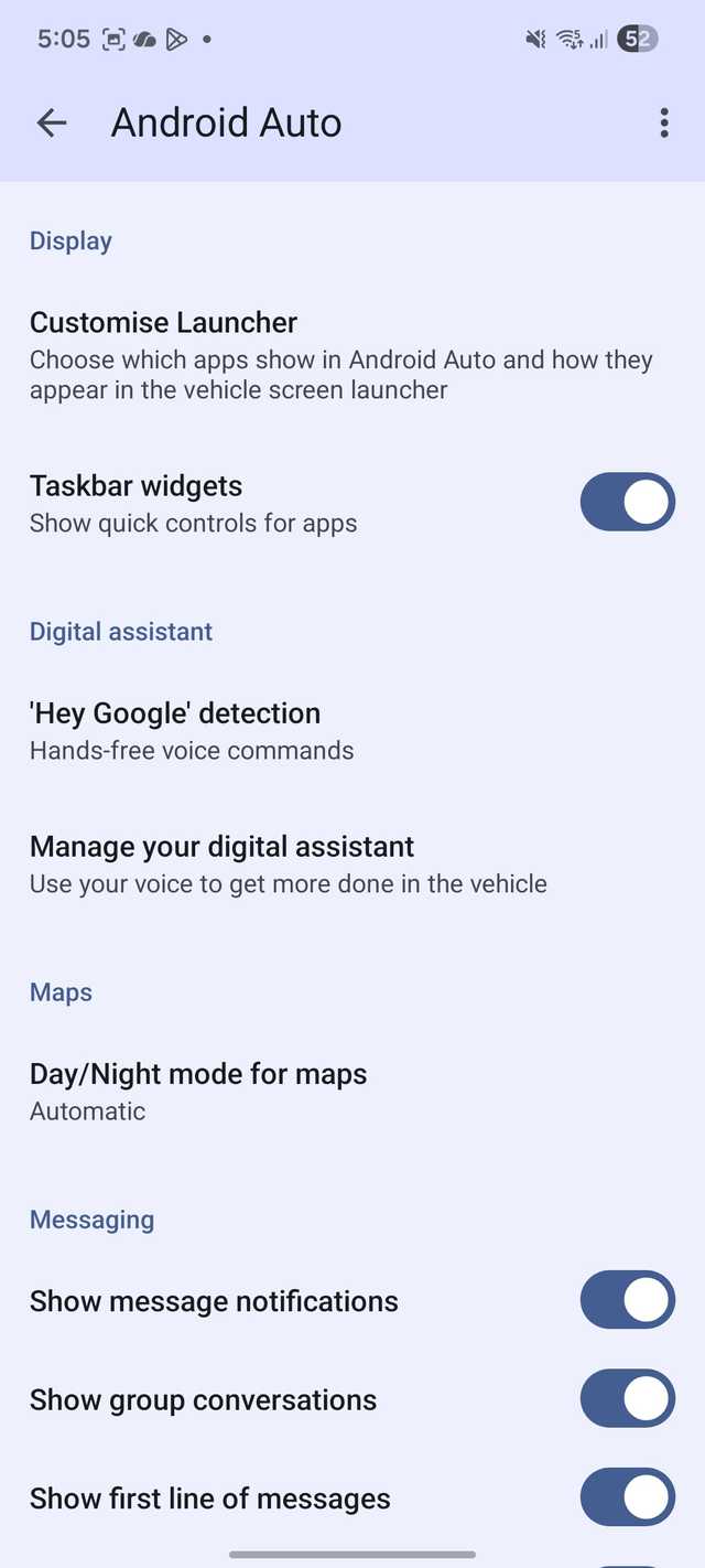 Cada vez que eu alternava entre os aplicativos, meus olhos ficavam fora da estrada por um segundo a mais. Para corrigir isso, ativei os widgets da barra de tarefas nas configurações do Android Auto.