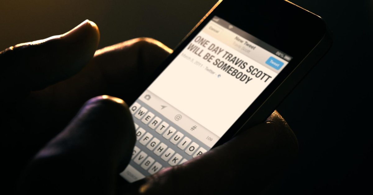 Foi quando ele pegou seu iPhone 4 e twittou seu agora famoso post, dizendo: “UM DIA TRAVIS SCOTT SERÁ ALGUÉM”.