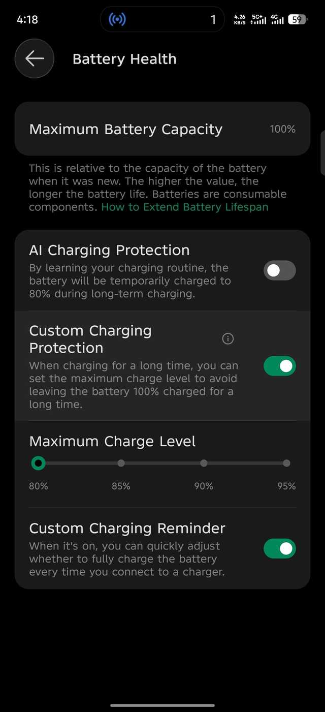 Mas, como usuário frequente, meus ciclos de carga frequentes certamente terão um impacto. É algo que não me preocupa, pois meu aparelho oferece controles para ajustar hábitos antes que sua condição piore.