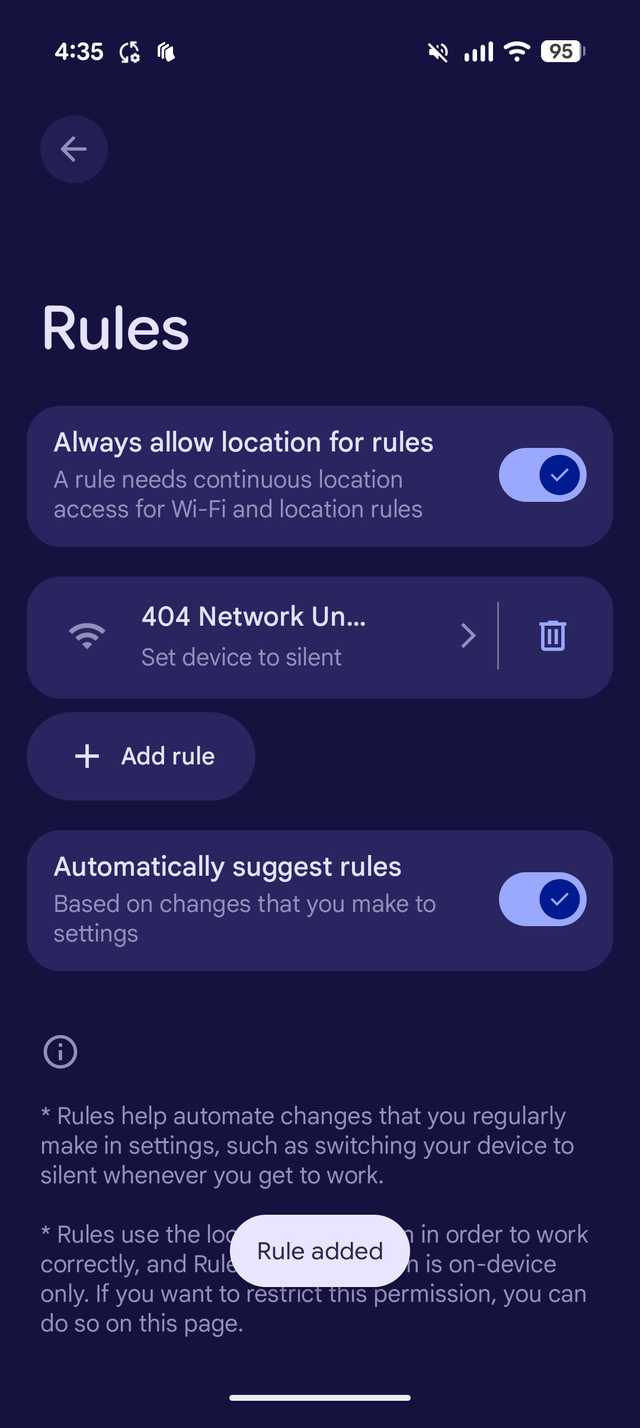 Com esses regulamentos, não mais preciso alternar essas configurações à mão, o que eu descobri bastante problemático nos telefones de pixel de qualquer maneira.