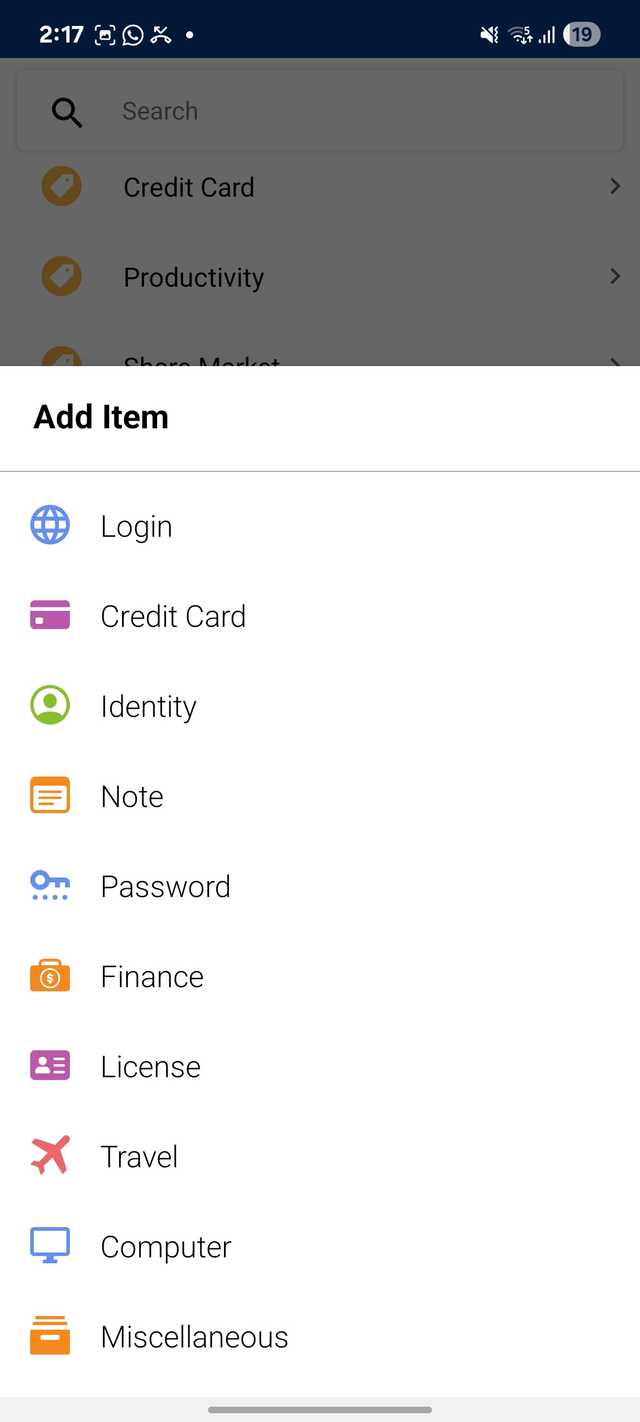 Posso salvar itens rapidamente em categorias padrão, como logins, cartões de crédito, identidades e notas seguras. Posso até criar categorias e modelos personalizados com base nas minhas preferências.