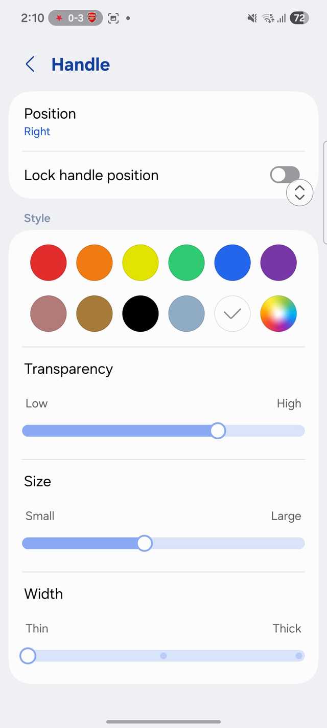 Adoro estar no controle da própria alça. Posso ajustar facilmente a posição da alça verticalmente em qualquer lugar ao longo da lateral da tela.