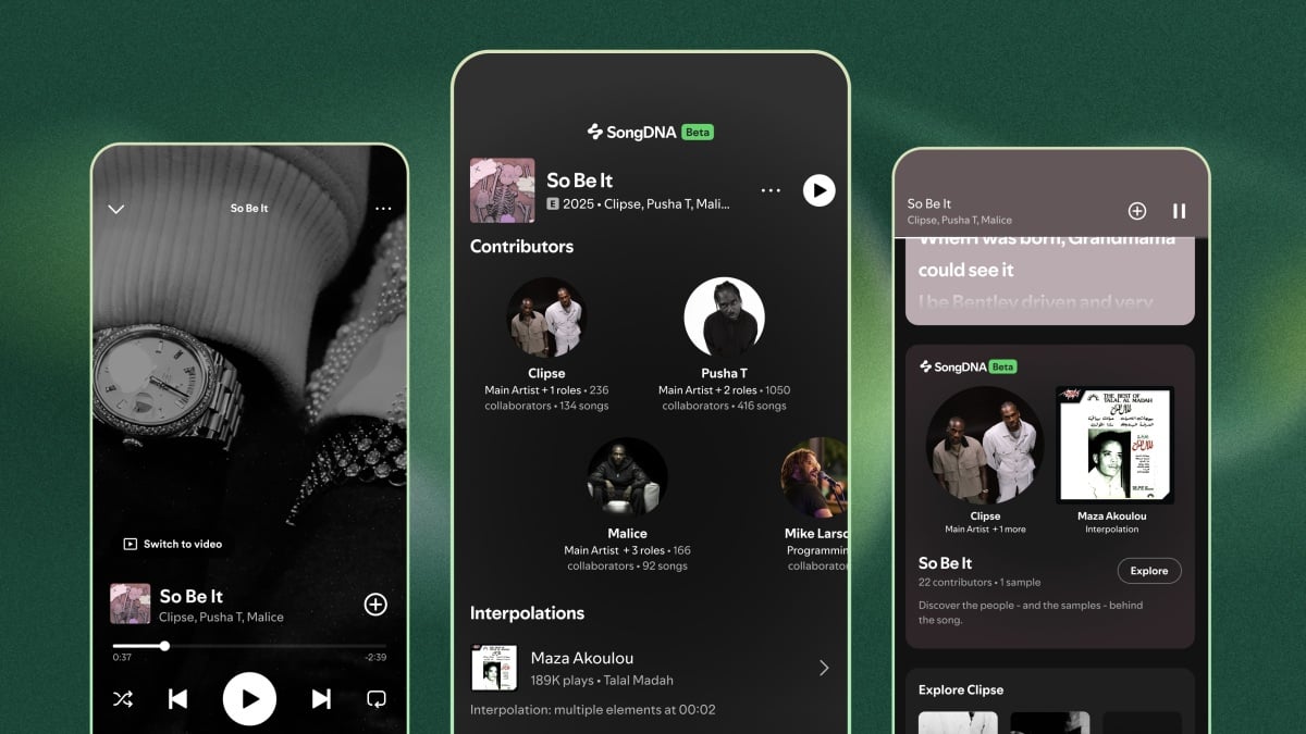 Na verdade, sou um cara da Apple Music, mas devo dizer: isso é demais (sem trocadilhos). A maioria de nós ouve nossa música sem realmente saber muito sobre como ela foi composta – fora o artista principal, pelo menos. O SongDNA torna mais fácil aprender mais sobre como suas músicas favoritas foram feitas, de onde elas se inspiraram e quem realmente ajudou a fazer o sucesso além do cantor ou artista. Você pode entrar em contato com o engenheiro-chefe ou produtor de sua música favorita para ver em quais outros projetos eles trabalharam ou verificar as músicas completas que foram amostradas para encontrar novas músicas para ouvir. Embora seja uma pena estar disponível apenas para assinantes Premium, é uma grande jogada da parte do Spotify.