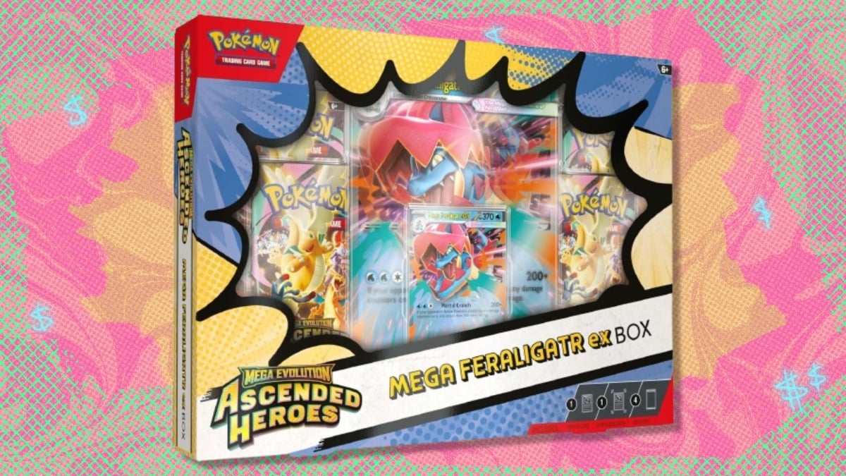 DR: A Amazon tem o Pokémon TCG Mega Evolution Ascended Heroes Mega Feraligatr ex Box à venda por US$ 81,91, abaixo do preço normal de US$ 89,95. Isso economiza $ 8,04 em uma caixa que inclui um cartão promocional metalizado Mega Feraligatr ex, um cartão lenticular grande e quatro boosters de Heróis Ascensionados.