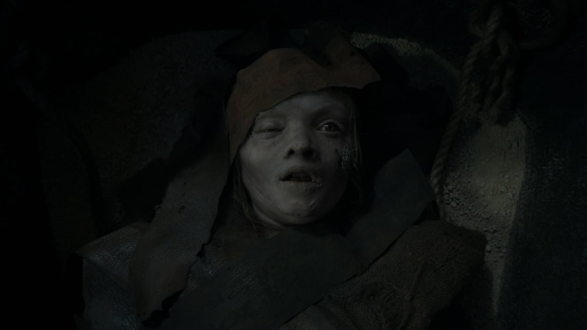 Essa criança é Katie (Natalie Grace). Ela desapareceu em uma viagem ao Egito com seus pais (Jack Reynor e Laia Costa) oito anos antes, apenas para aparecer repentinamente em um sarcófago.