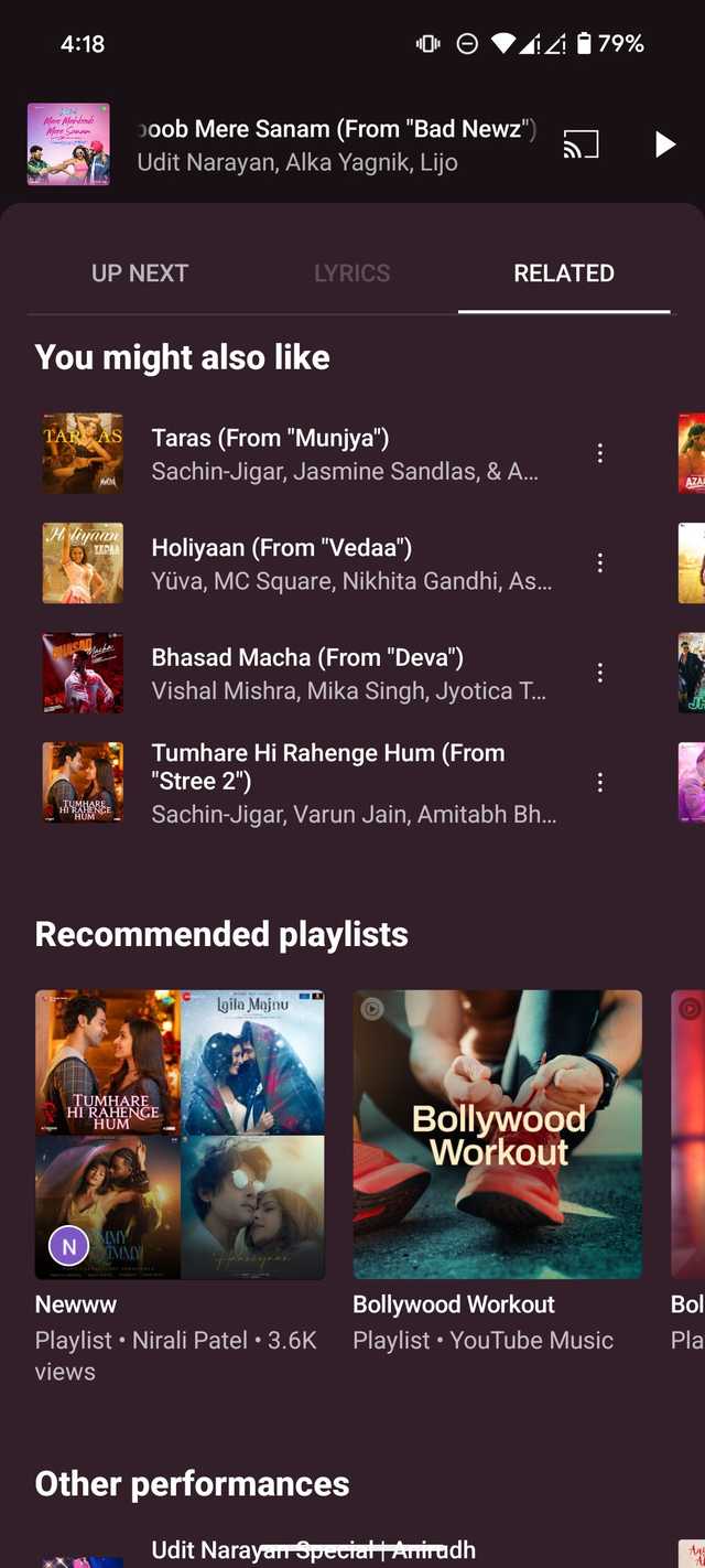 Se eu voltar do vídeo para o modo Música, o YouTube Music não reproduzirá apenas o áudio do arquivo de vídeo. Ele reproduz uma faixa de áudio mais limpa e com qualidade de álbum.