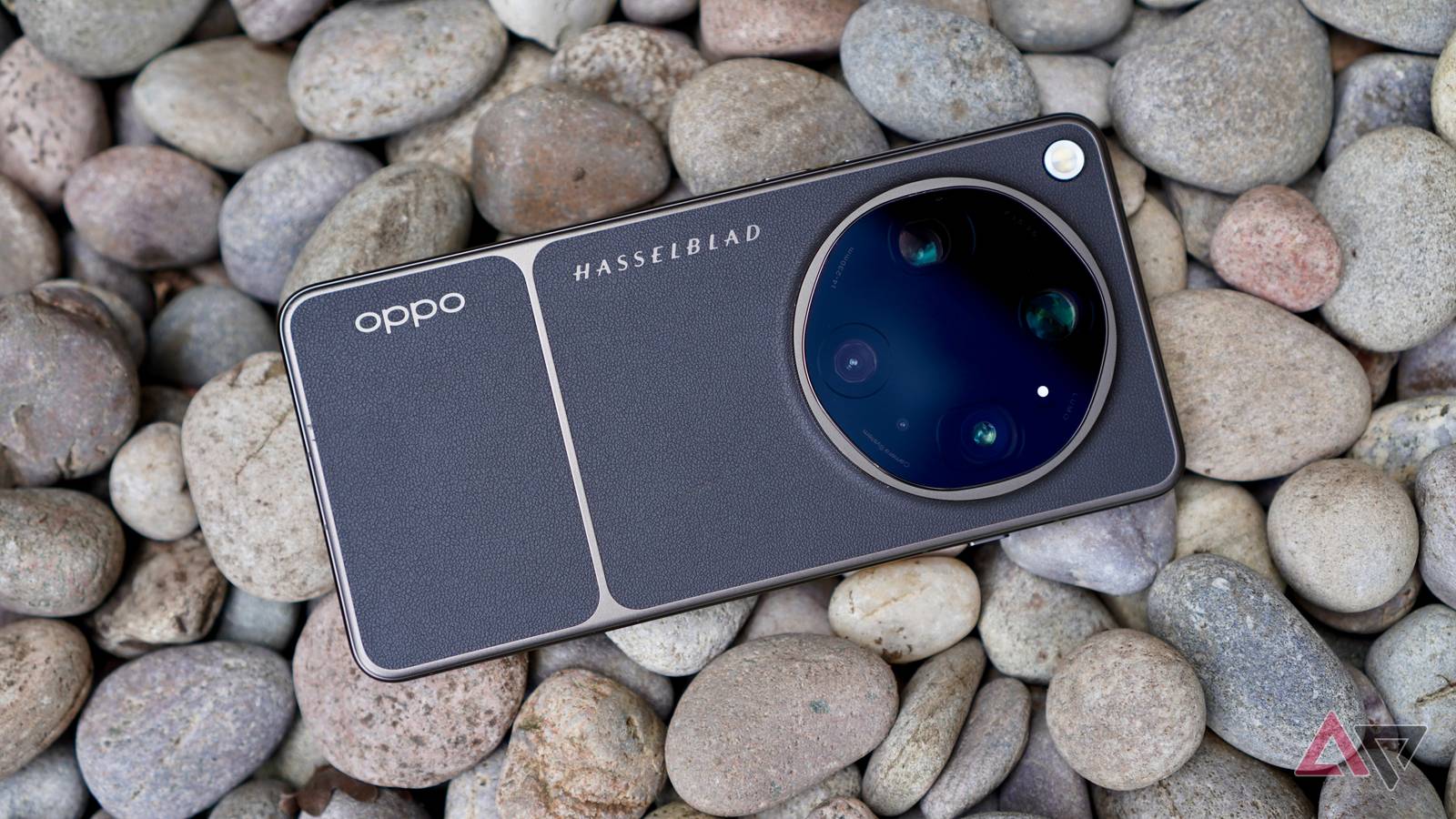 Observe as marcas Hasselblad e Oppo, que são apresentadas na parte superior do telefone quando ele está na orientação paisagem, como uma câmera normal.