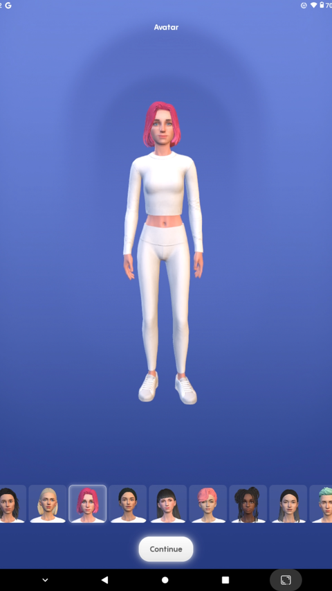 Você pode ajustar as características físicas da sua replika selecionando funções como forma do corpo, penteado e cor dos olhos.