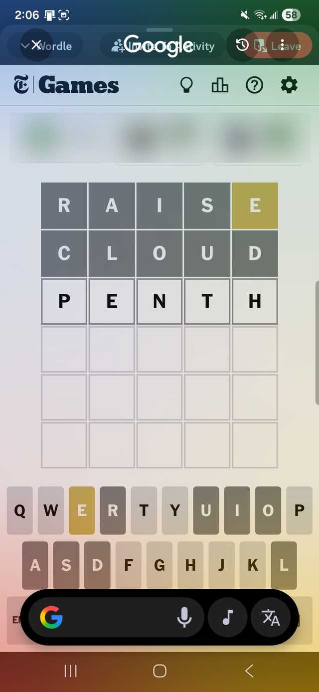 Eu tentei isso no aplicativo Wordle. Às vezes não sei se a palavra que estou prestes a adivinhar é comum, então uso Círculo para Pesquisar para procurá-la.