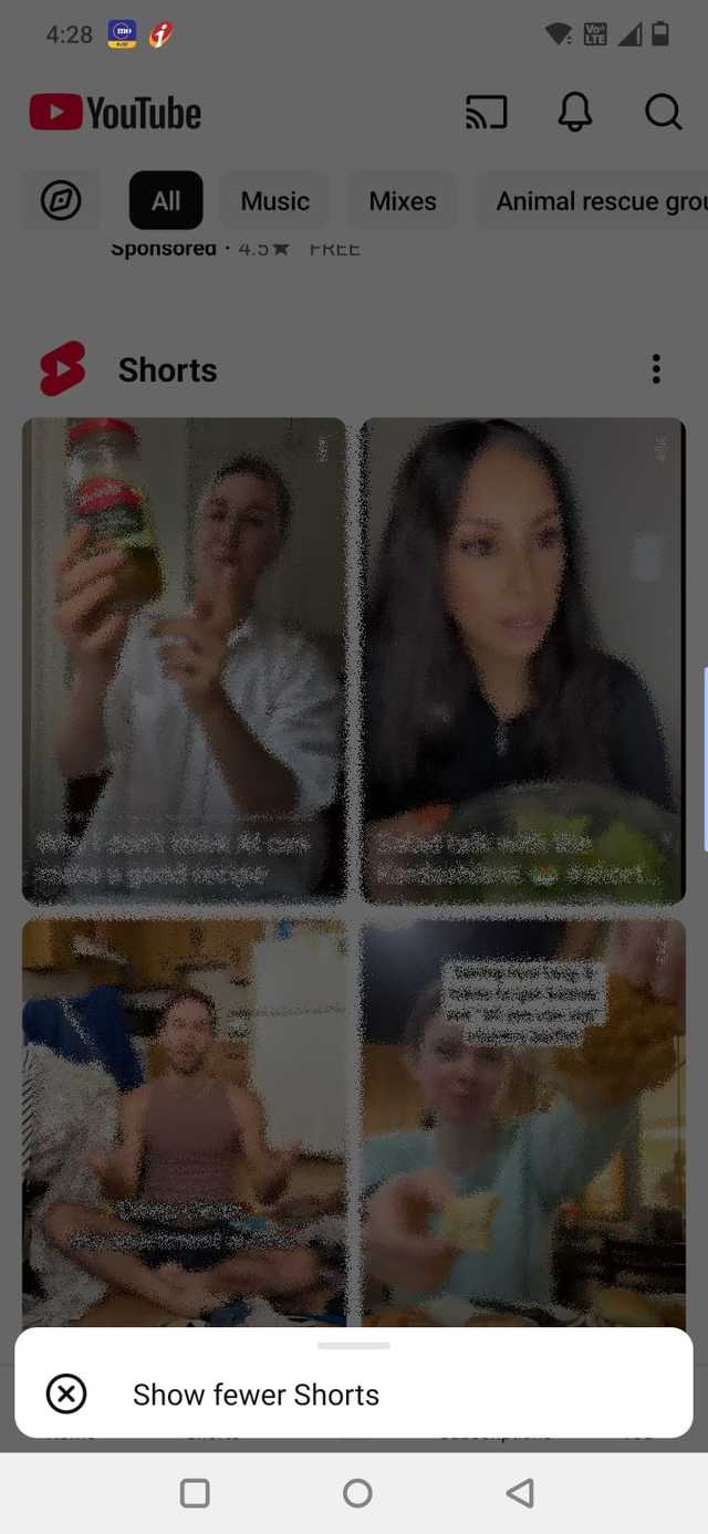 Você também pode restringir o número de Shorts que vê rolando até o Shorts seção em seu feed, tocando no ícone de menu de três pontose selecionando Mostrar menos Shorts.