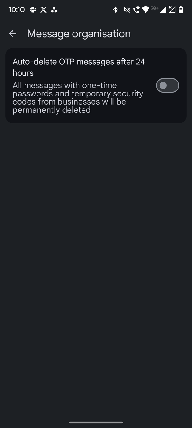 Você não precisa limpar manualmente seus OTPs depois de ativar essa configuração no Mensagens do Google.
